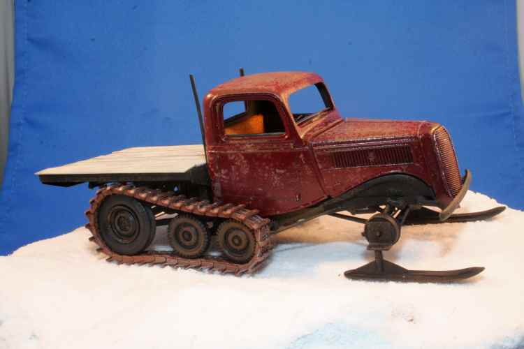 I had been working on the tracks. The small wheels will be from a 1/35 Willys Jeep. I