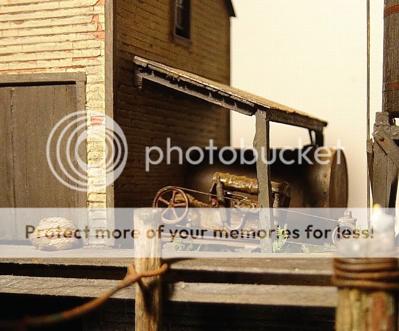 All the discussion of the Fordson powered critters got me thinking about a use that I put to a Fordson some time ago. This, a cannibalism of the Jordan Miniatures 1/87 scale kit to power a small water pump at a steam ferry wharf.