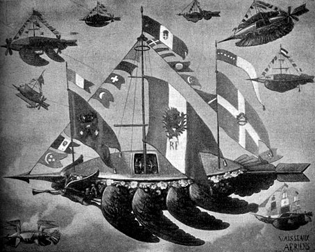 I remember Mad Magazine used to put these recurring spot drawings of a really far-fetched airship in the margins, but the internets didn't find me an image to share.   :-[