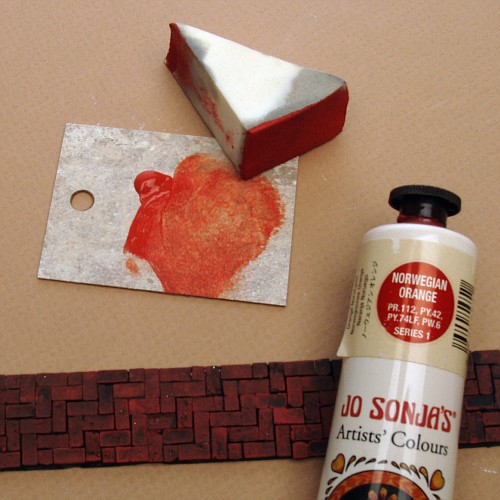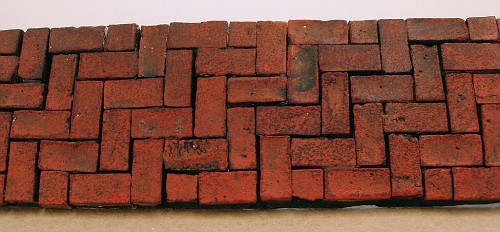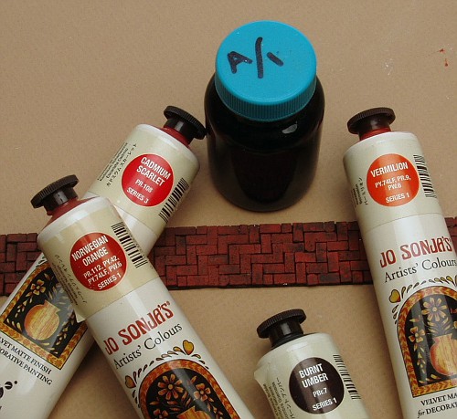 Next, the bricks were lightly dabbed with Norwegian Orange applied with a