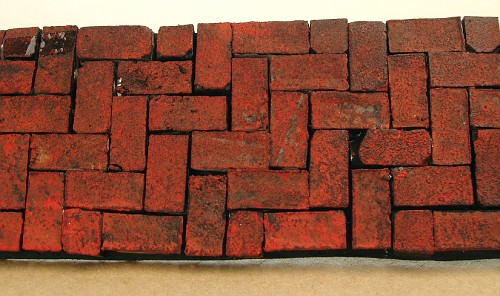 Ken those bricks look great. One thing I do when the bricks chip and the white plaster shows through is to apply diluted red paint to the chipped area so that you have a bright looking chip, just like a real brick.