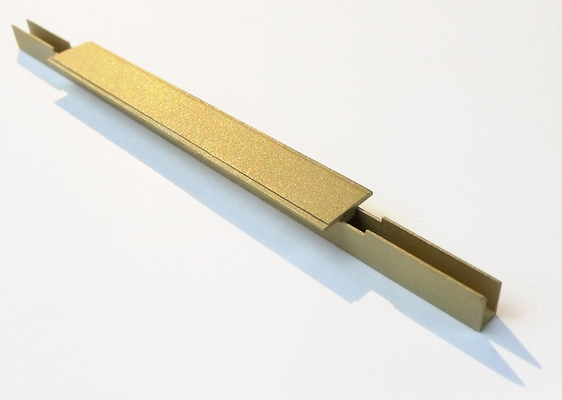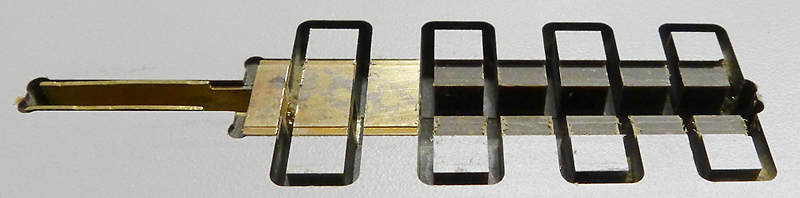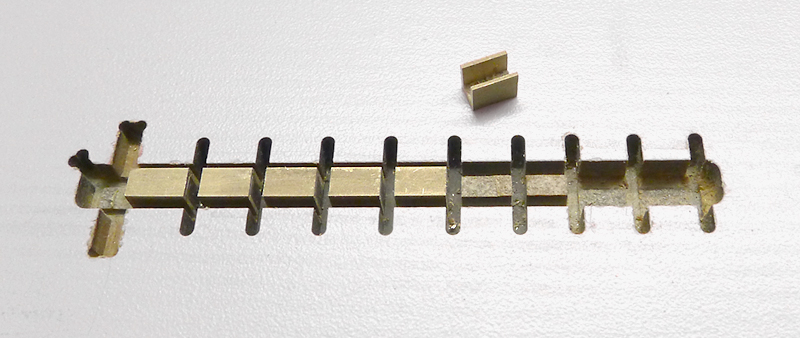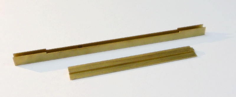 First a 2.7mm wide U-profile with a wall thickness of 0.34mm was milled from a 4.0mm brass plate. Thereby it received a 0.6mm recess for inserting the middle plate.