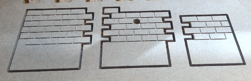 First I engraved the wall joints for the 3 wall parts with a 0.5 mm cutter in 5 mm thick MDF.