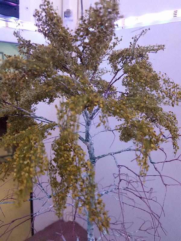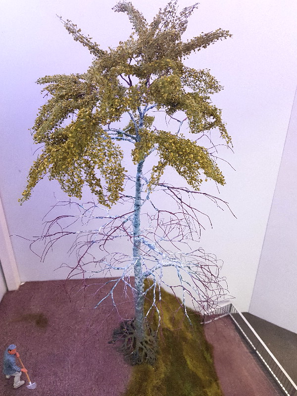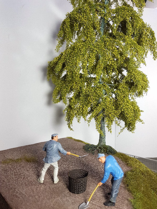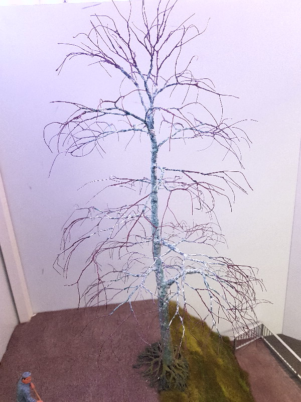 thank you for the recognition and suggestions. Yes twisting wires is old school and I still think the best method. Since I had no old copper cables I took iron binding wire that I had. This goes very well and even has an advantage of the thin wire is not quite as flexible and 0.4 mm wire fits very well with me on a scale of 1:22.5. Only I have built a birch and the cracking in birch bark goes ehr not and beech seem to me most suitable. Since all the trees on the "Klosterstollen" actually have their wildly total, there are actually no beech trees.
