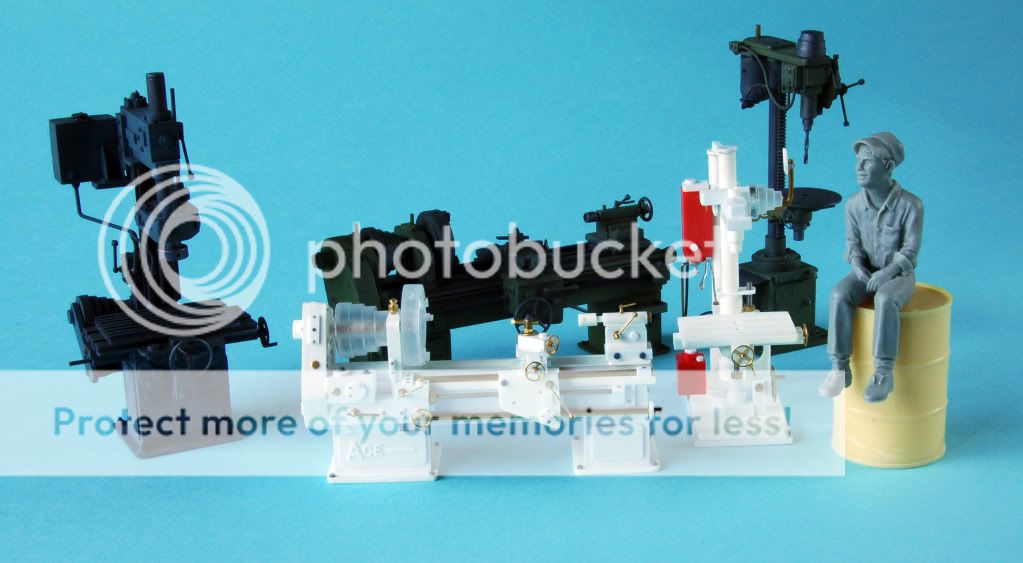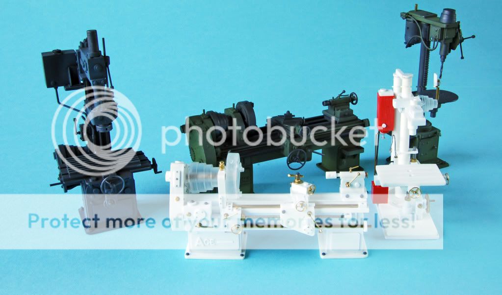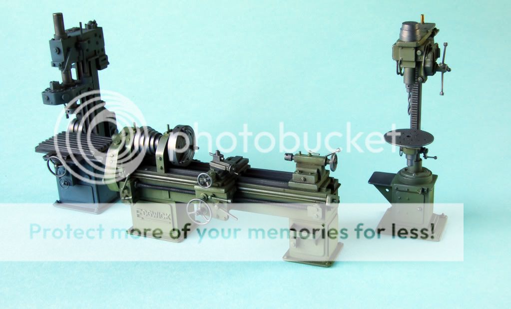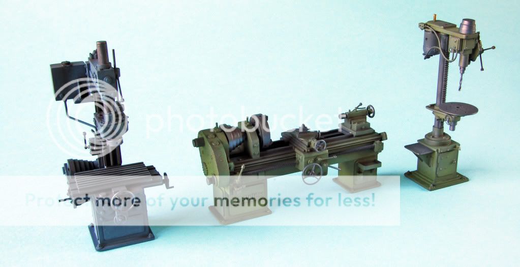 After a break from the workshop to finish other projects off Odd bods and all that stuff for the Euro show - now back at it . Some of the machines painted but still a bit of work to do belts and pulleys and those brass oiler things plus still building more machines -has anybody any thoughts on what to use for the flat belts -paint used was Humbrol enamel -metal finished by dry brushing Humbrol Metal Coat polished steel over tank grey undercoat but I think I might try the AK metal colour on the next lot of machines enclosed photos of some of the machines.