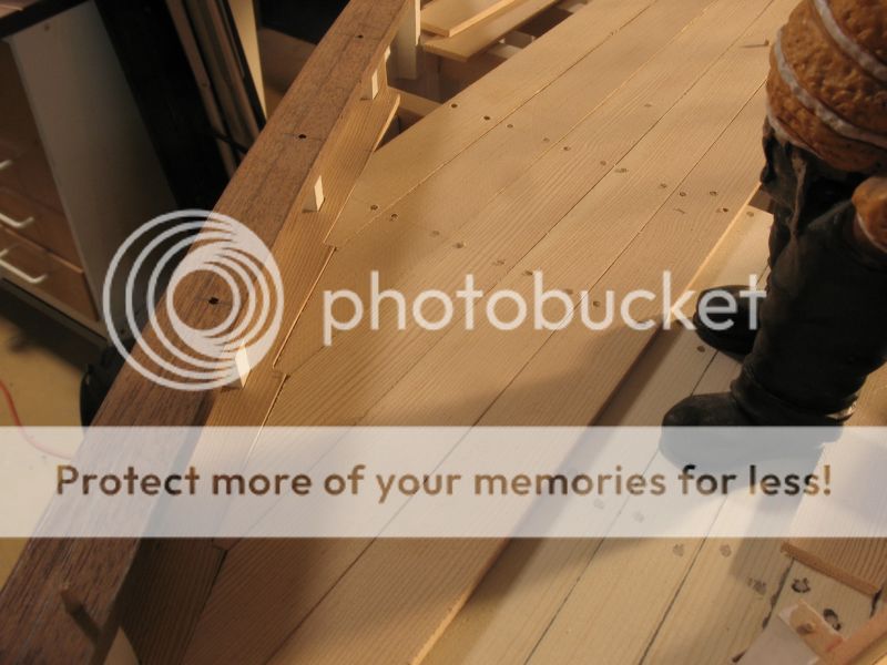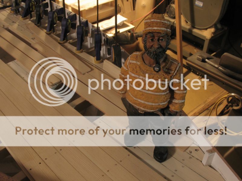 however a problem with the edge of the deck planking requires a top layer of planks to cover the mistake. seen here at Walter's feet.