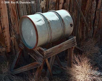 Here's an old galvanized steel barrel I saw in Silver Peak, NV: