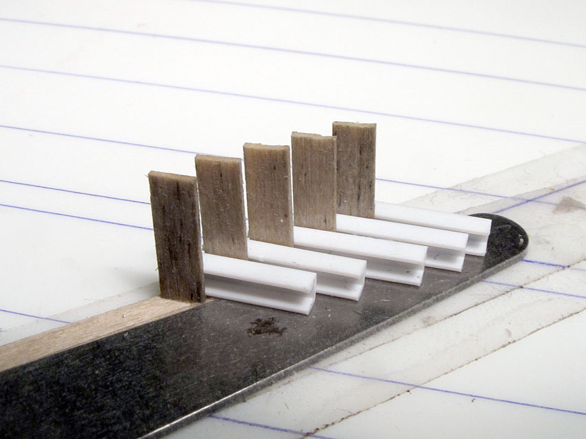 But I still think wood is the best choice, as the rest of the building is wood. And I think a little exaggeration for the weathering, grain, etc is OK for a building that is going to be placed on a large layout. It is a slight element of cariacature that is not entirely out of character for the context.