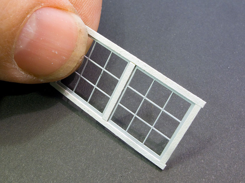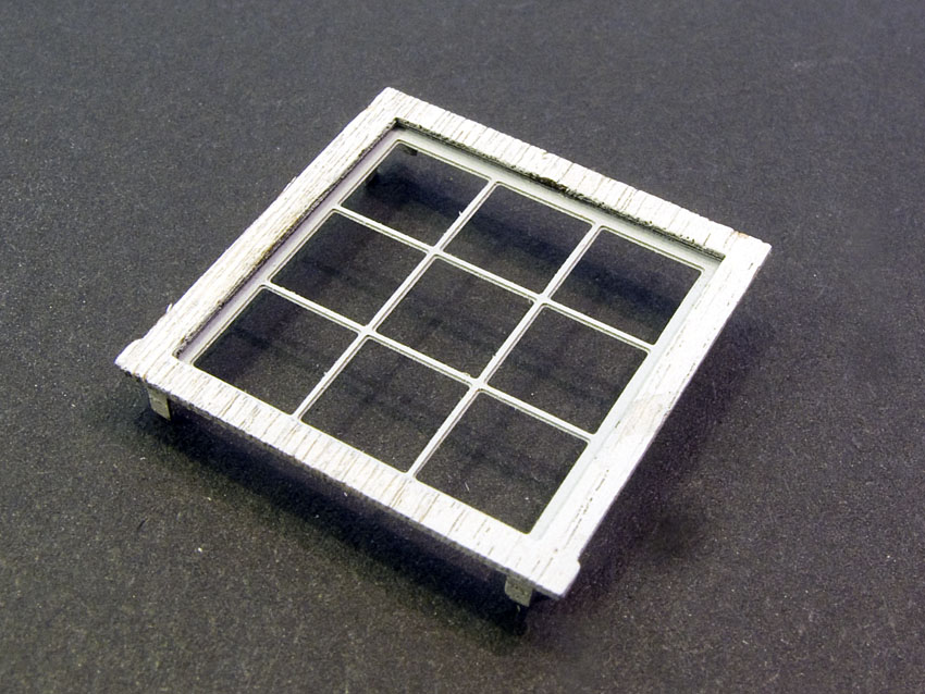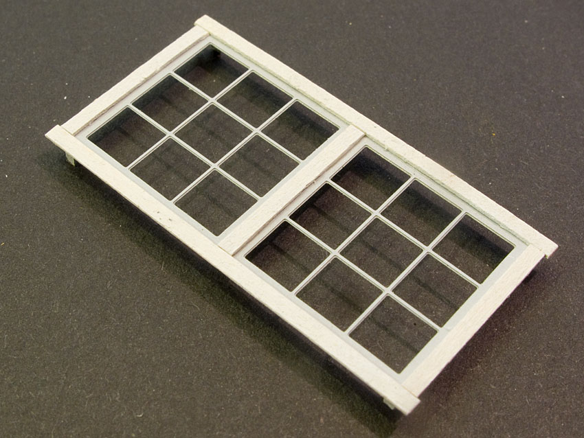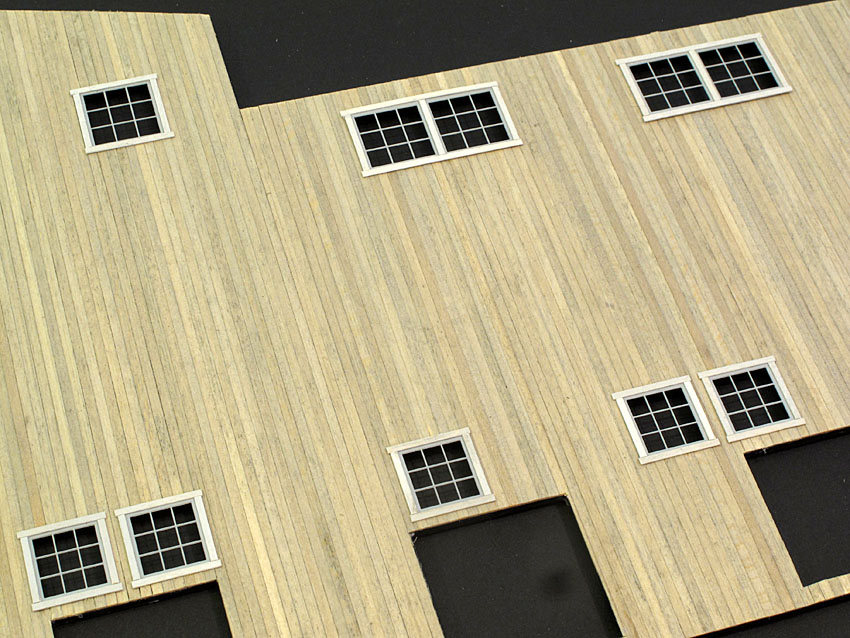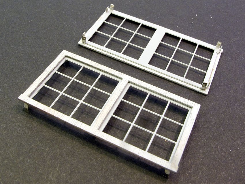 Closeup of  some finished windows. I think you can see why I wanted to substitute the lasercut framing for stripwood!