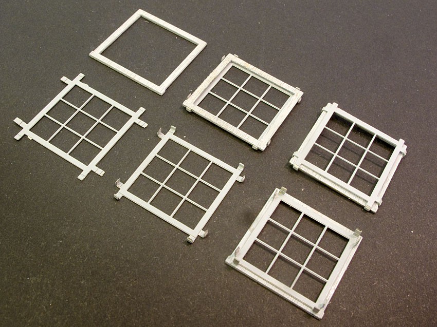 A great feature of the photoetched mullions was the possiblility of adding fold-up tabs for guiding the window frames and for positioning the finished windows in the wall openings.