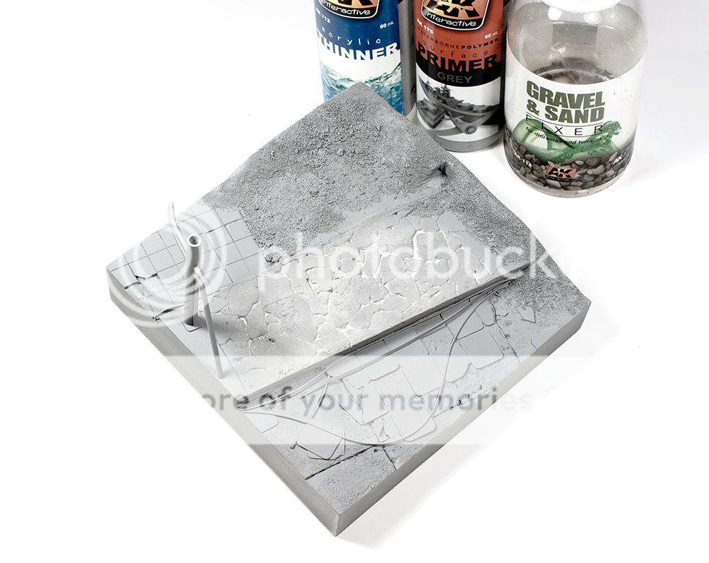 I always prime these effects to see where I need to add or subtract texture, here with AK grey primer and their acrylic thinner.