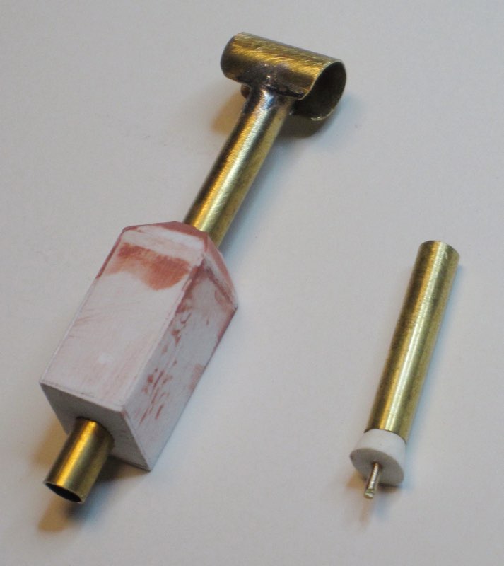 The smokejack was made from brass tubes and a block of PVC, sheathed with thin styrene. I also made a vent pipe: