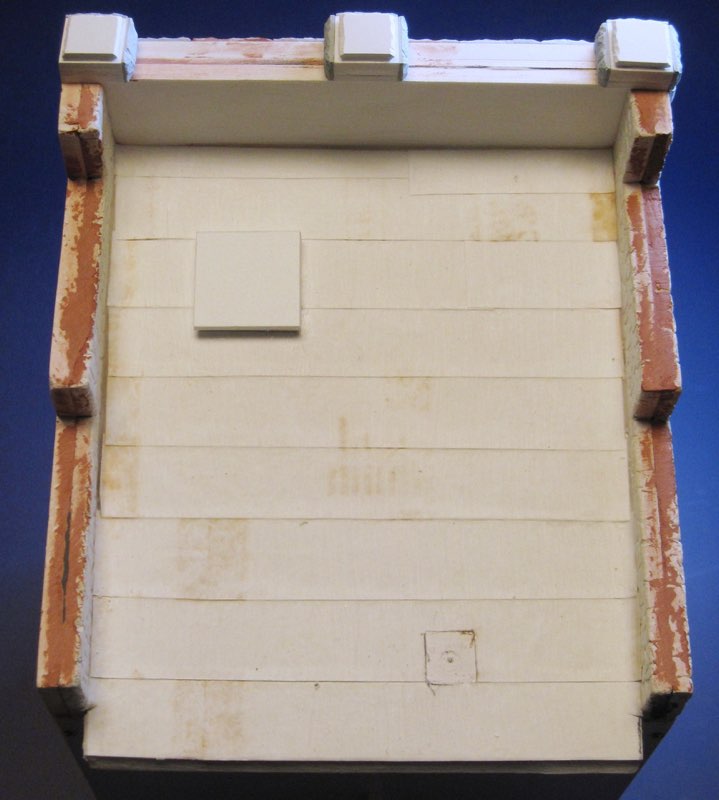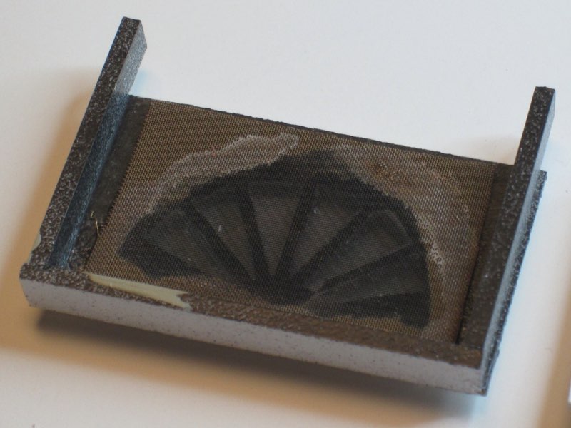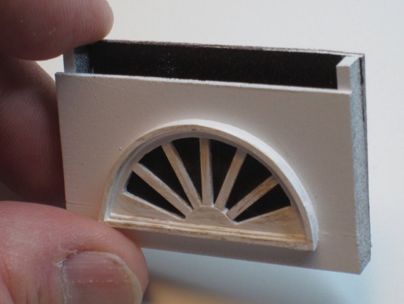 The attic vents were painted in the same manner. Then the rear of each vent was painted black, and a fine brass screen glued into place: