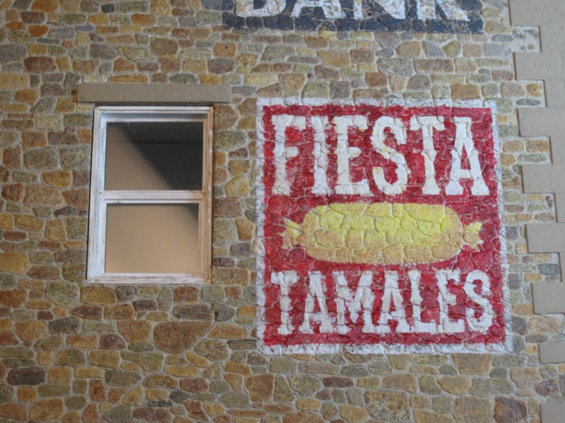 The letters were painted off-white, and the tamale was painted in shades of pale yellow and brown:
