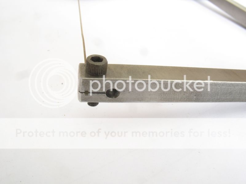 The top locking screw is a 4x40 allen head cap screw that squeezes the thinner section of the slotted end to the thicker part the slott is caut with a .010" slotting saw in the mill. The overall proportions were based on the regular jewelers saw.
