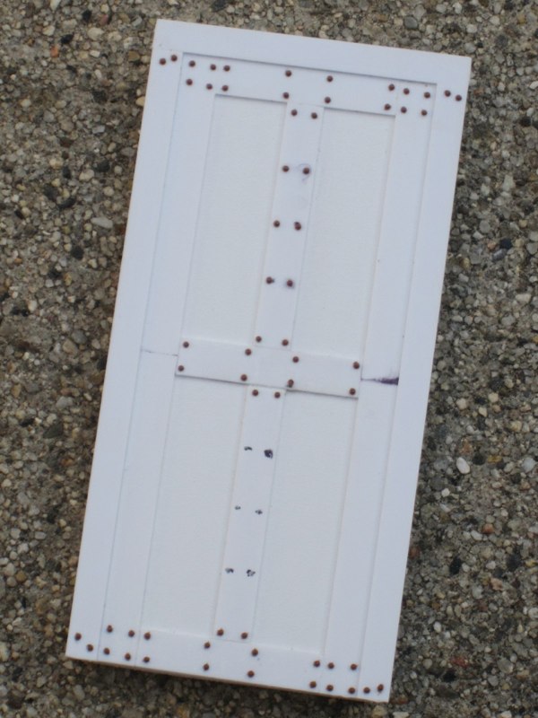 Here's the door with a coat of primer. After shooting this photo I realized I had forgotten the hinges -- these were added later: