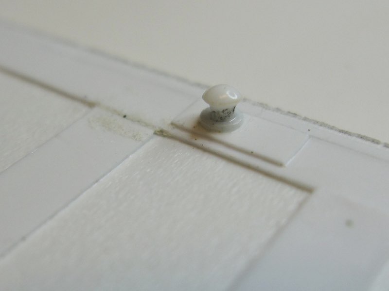 Here's a close up of the doorknob. I made the knob by holding the end of a styrene rod near a flame: