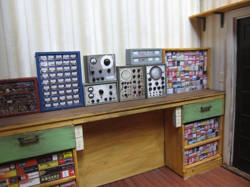 Outstanding. I also agree with Volker about the work bench.  I use to hang around a similar radio repair shop. May I suggest that you install a shelf above the bench for the testers and hang the parts bins on the wall?  Next step is a couple of chassis of radios with tubes showing on the bench being repaired. I am learning a lot by following your work.