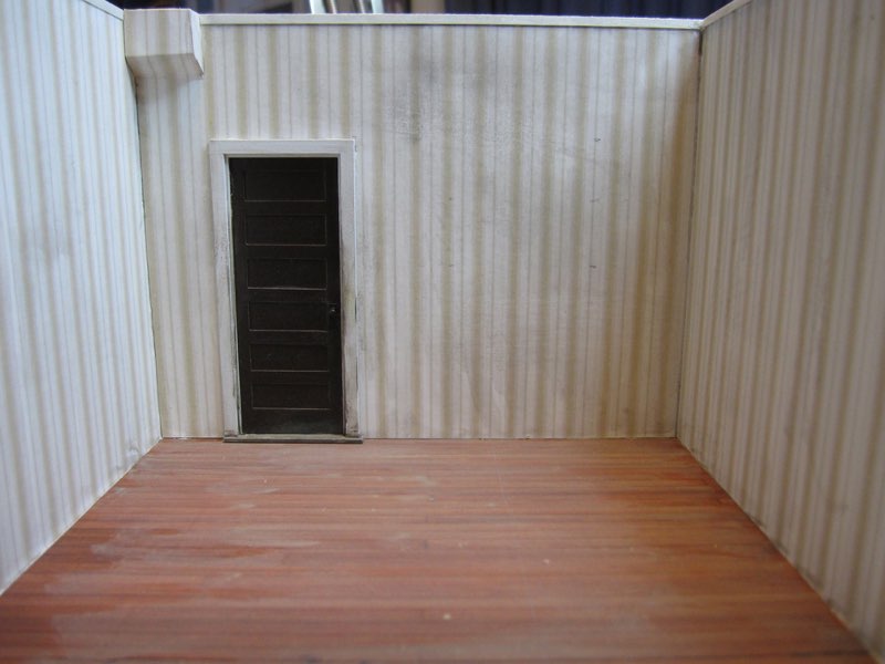 I "weathered" the interior with thin washes of craft acrylics to give the walls and floor a little grime and wear: