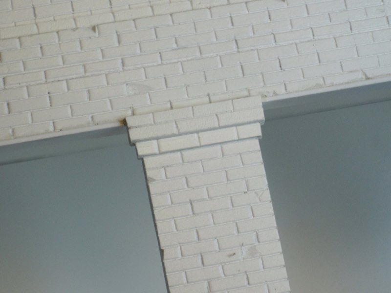 With the window and doors completed, I added the brick trim to the top of the columns:
