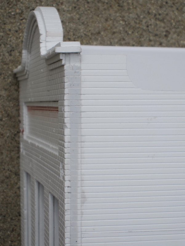 Part of the side wall will be visible, so it will have to be scribed with a brick pattern. Before doing so, I needed to smooth out the joint. I used an epoxy putty for this, called "Kwik Plastik". I only had a little left and it was getting old and lumpy, so I couldn't spread it very well: