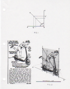 To add second plane add base line E-F crossing A-B at7 out at an angle to the right to match the base of the object such as a box. Extend reference line to the right to establish all verticals up from the baseline as was done in the first plane.