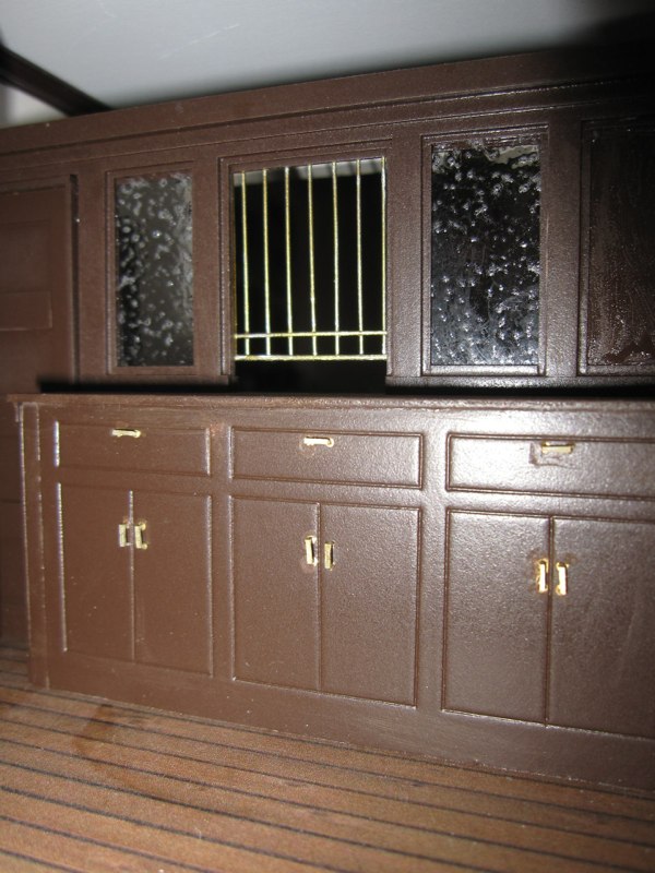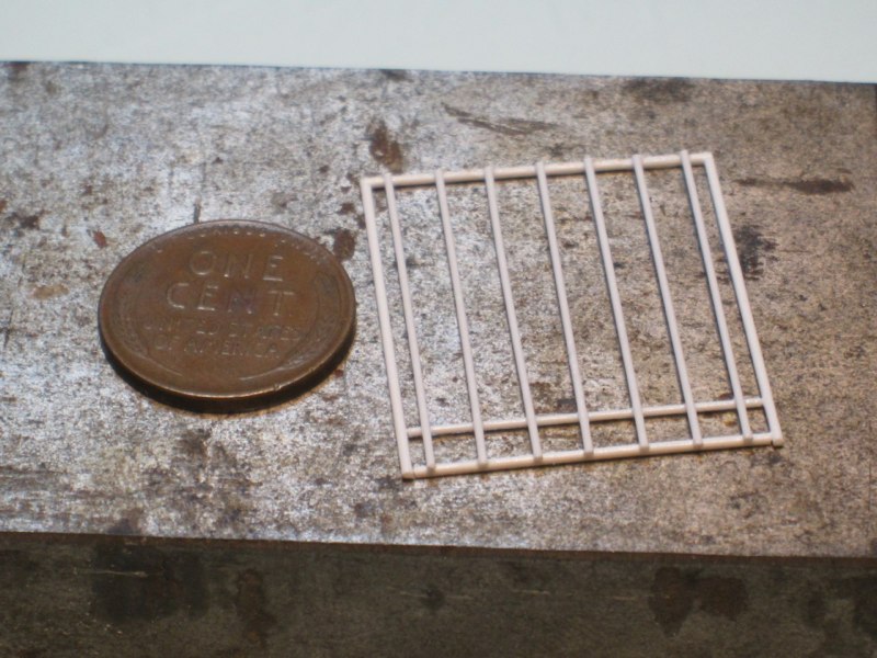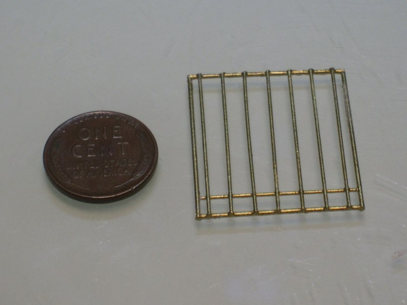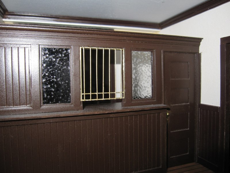 The security bars for the ticket window were made from .020" and .030" styrene rod. It might have been better to use brass but this was easier to work with and a lot less sloppy than my rudimentary soldering skills would have done. The bars were painted to look like polished brass"