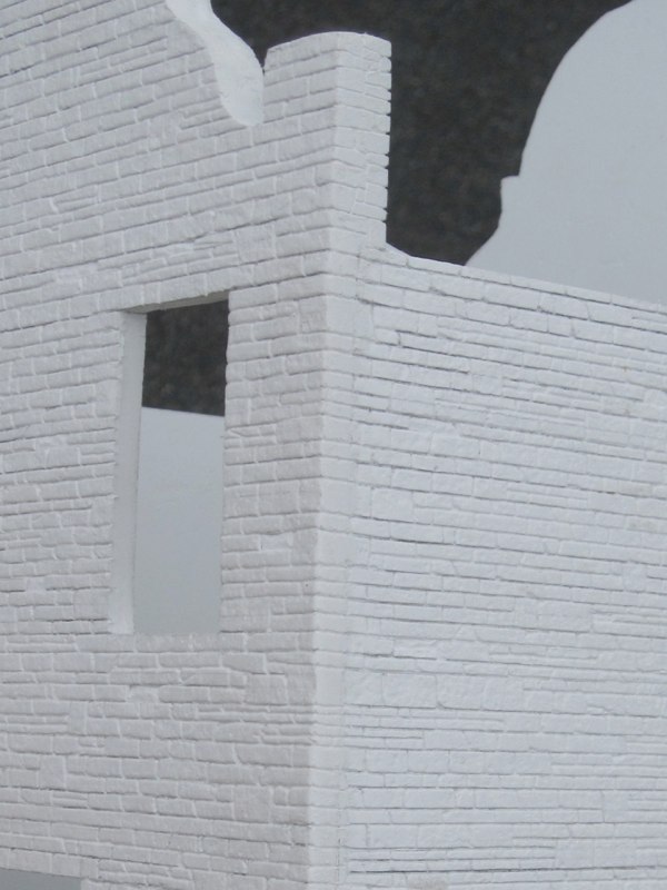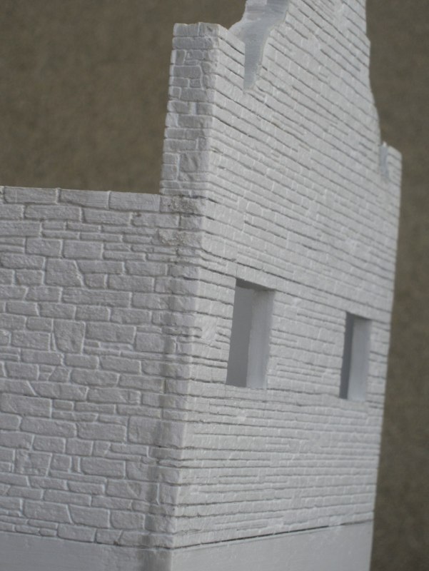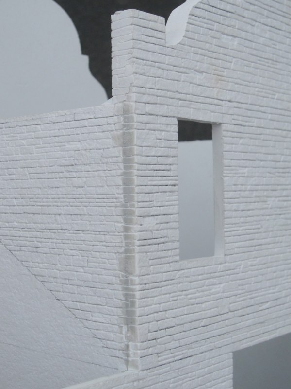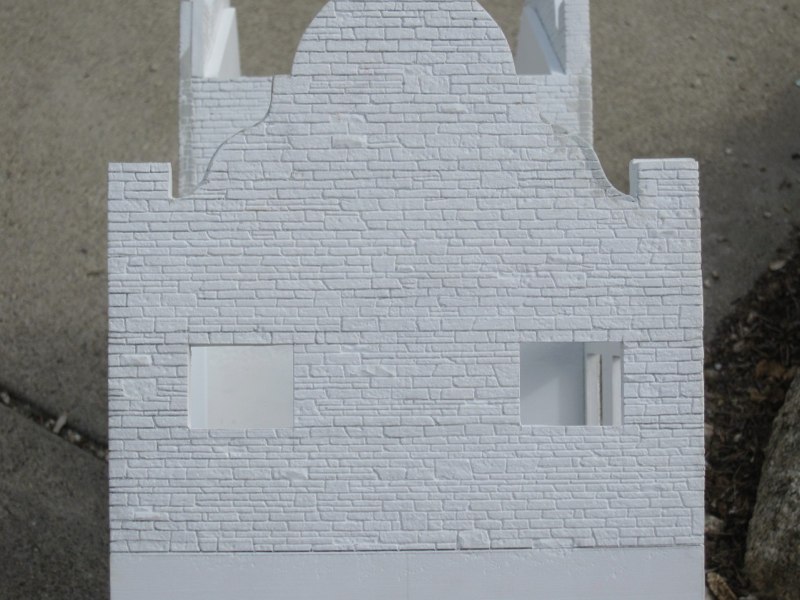 I also created a special piece which will be laminated to the back of the west wing's end wall, to increase the wall's apparent thickness: