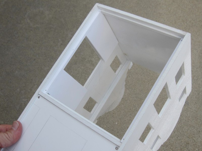 Here's the box which will contain the interior. The ceiling is removable and held in place with small screws: