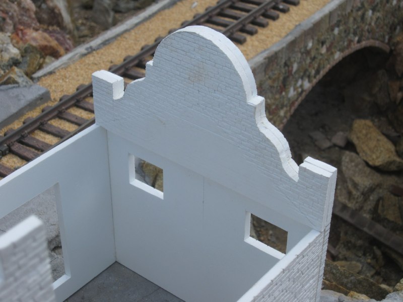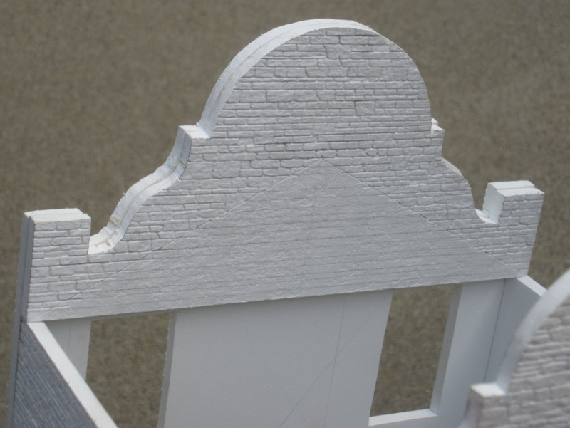 Here's the top of the west wing's end wall, showing the special piece that was added to make it look thicker: