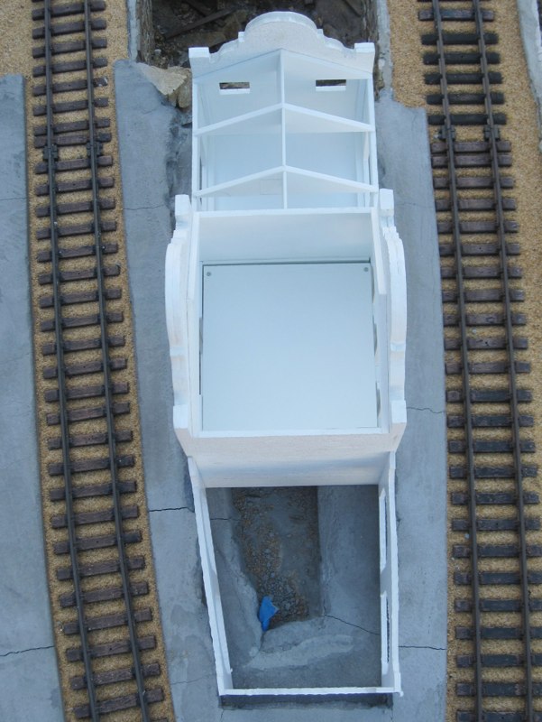 On the depot, the interior box has to be accessible from below. Not a big deal but it does complicate things a bit. For one thing, the way I make and install the windows, they extend into the building slightly. So the box has to clear the windows and avoid damaging the shades/curtains.