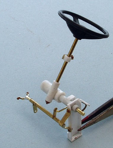 pretty much like the model, with simple steeriing box connected to the front wheels in  a way that seems