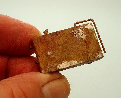 When it dried, I blew off the excess with a can of compressed air, leaving a heavy texture on the rusted areas...