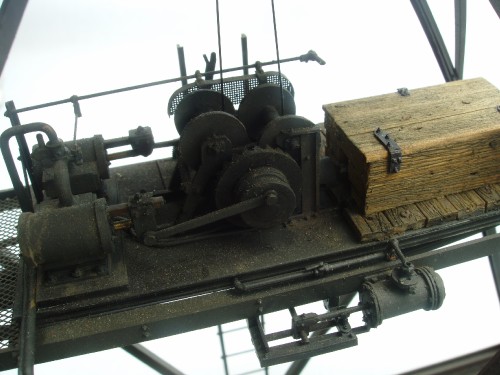 The prototype was operated by a steam line connected to the locomotive that pushed it. The model