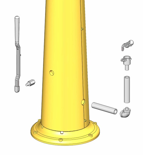 Chuck,   I really like the way the pump is coming along ;)  Here's some suggestions i got kicking around in the old melon :D about how to paint or color the drain back pipe. You can paint the pipe the same color as the pump from the cap down as this would be right !! then another way would be galvanized pipe from the cap down. [see picture]  and a nice old rustie lock would look good locking the CAP. On the pump handle i was trying to find some pictures to see if it had any wood on the top of the handle on each side of the cast handle top....but couldnt come up with anything :-\ if that style of pump would have wood on the handle or not.  Notice the color of the part were the handle goes to.   Craig