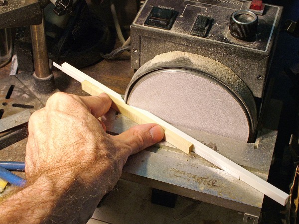 Thanks Marc. I set up an angled fence on my disc sander and put an eccentric sticky pad on and ran the beams across the edge to make the marks.