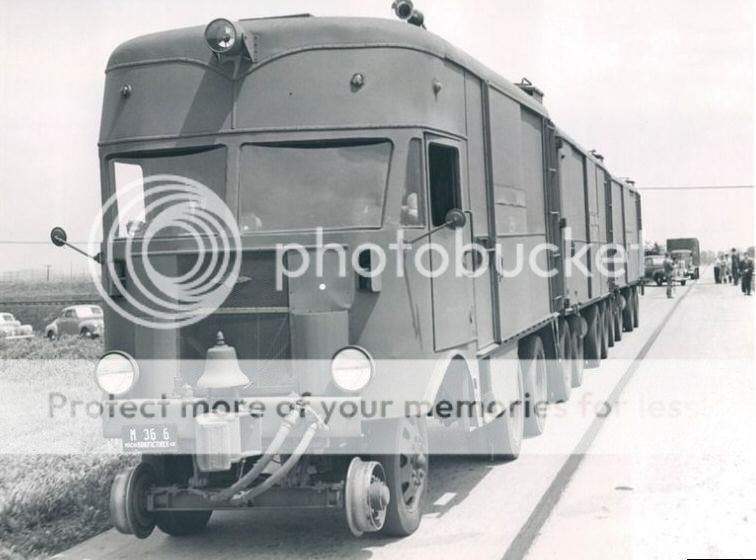 This next item sure is an odd one. It has tires but also has some obvious equipment for operating on rails. The site where I found the image said it was used by the Navy to transport explosives: