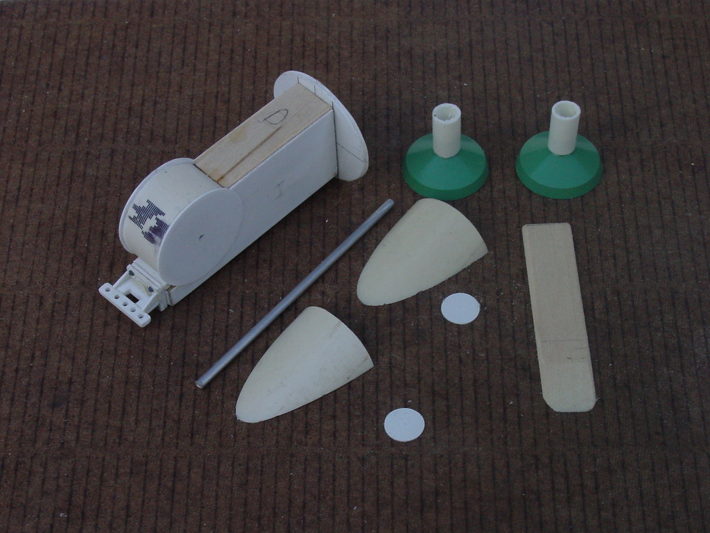 A (3) ring/flanges 5/8" OD x 3/8" ID (Plastruct # RI 12) ( stack the three around part B.) (sand flat on on one side and add part C keeping the assembly  centered.