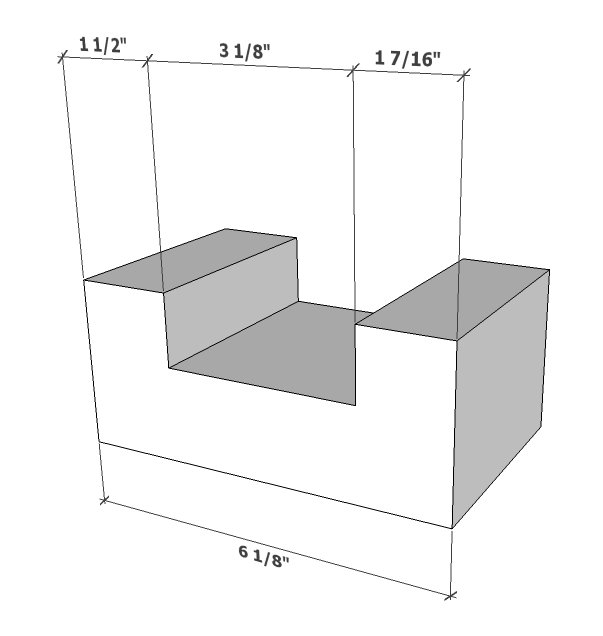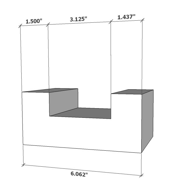 Using a bunch of correctly dimensioned boxes I got the part drawn correctly in 2D.